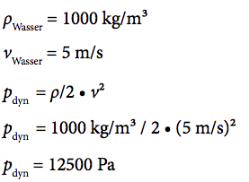 pdyn = 1000 kg/m3 / 2 • (20 m/s)2 pdyn = 200 000 Pa