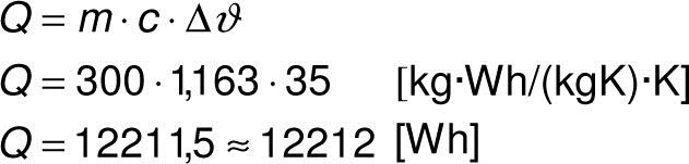 Die Energiemenge zur Warmwasserbereitung an einem Tag beträgt also 12212 Wh.