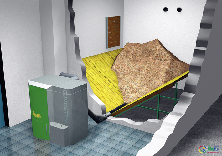 Und wenn es einen Halbautomaten gibt, dann ist regelmäßig auch ein Vollautomat erhältlich. Im Falle der Pelletheizung spricht man von einem Vollautomaten, wenn dieser eben vollautomatisch mit dem Brennstoff versorgt wird. Ausgehend von einem Tank oder Silo werden die Pellets entweder per Schnecke oder Saugförderung an den eigentlichen Kessel herangeführt. Das „Rundum-Sorglos-Paket“ ähnelt damit dem Betrieb einer Öl- oder Gasfeuerung. Die Pellets werden dann üblicherweise in einem dazu ausgebauten Kellerraum bevorratet. Dies ist oft der alte Tankraum der Öl-Anlage. Es bietet sich auch noch die Lagerung in Silos aus Stoff, Kunststoff oder Metall an. Möglich ist auch die Lagerung in einem unterirdischen Tank.
