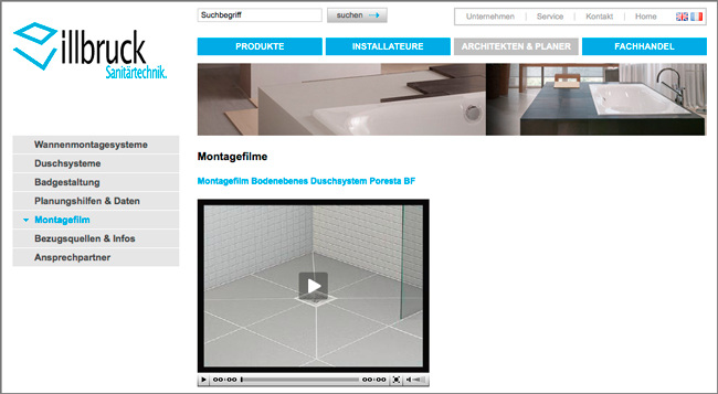 Wie die Montage eines bodenebenen Duschsystems ablaufen kann zeigt ein Film auf der Internetseite von Illbruck
