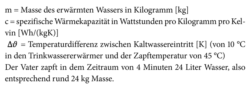 Zur weiteren Verdeutlichung rechnen wir noch kurz die Leistungsabgabe der jeweiligen Duschvorgänge und sehen dann klar.