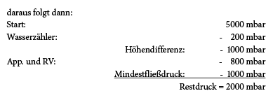 Wenn also der Versorgungsdruck 5000 mbar betragen würde und die Rohrleitung zum Verbraucher wäre 100 Meter lang, so könnte theoretisch 5000mbar / 20 m = 250 mbar/m verbrauchen.