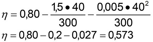 Nimmt die Strahlung jedoch erheblich ab oder trifft nur noch diffus auf die Kollektoren, so wird die Differenz des Wirkungsgrades zwischen den beiden Typen nochmals größer. Bei ansonsten gleichen Werten soll die bereits berechnete Situation nochmals durchgerechnet werden, allerdings mit einer Bestrahlungsstärke von nur noch 300 W/m². Dann ergibt sich für den Flachkollektor: