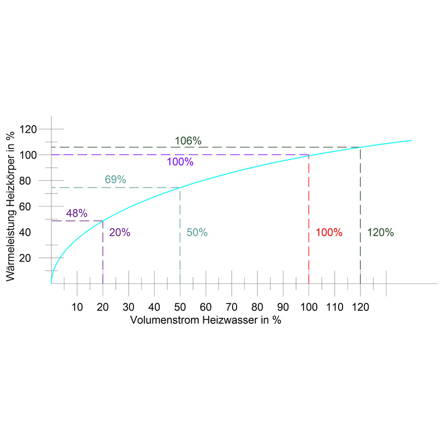 100 % Vol.-Strom = 100 % Leistung, 50 % Vol.-Strom = 69 % Leistung, 20 % Vol.-Strom = 48 % Leistung