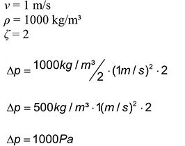 Das auffällige Resultat zeigt, dass bei einer Verdoppelung der Geschwindigkeit, der Druckverlust sich vervierfacht. Klar, werden die Mathematiker unter den Lesern sagen, die Geschwindigkeit geht quadratisch in die Berechnung ein und Verdoppelung bedeutet mal zwei und zwei zum Quadrat ist vier. Umgekehrt kann man natürlich ebenso verfahren; wen wundert es? Eine Halbierung der Geschwindigkeit führt zu einer Viertelung des Druckverlustes.