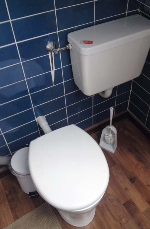 Zuerst läuft das Spülwasser in die Wand hinein und aus nicht ersichtlichen Gründen, urplötzlich, dann doch zur Spülung ins WC. Es handelt sich wohl um echte Magie. Auch Spezialis-ten, die sonst die Geheimnisse des Pyramidenbaus aufdecken, scheitern hier an einer Erklärung. Ob es mit einer geheimnis-vollen Fliesenbeschichtung zusammenhängt?