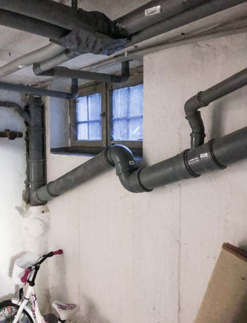 Da das Gefälle nicht reichte und die Schmutzwasserleitung zu tief gelandet wäre, wurde halt ein Versatz ins System eingebaut. Unnötig zu beschreiben, dass da jetzt ein weiterer Siphon entstanden ist, an dem zukünftig Ablagerungen zu einem Stau führen werden. DIN EN 12056 und DIN 1986 sehen diese Konstruktion so jedenfalls nicht vor.