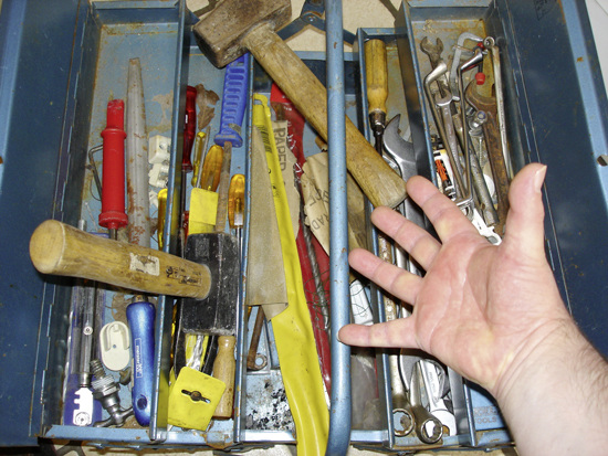Den Blick auf die Arbeit gerichtet, haben Werkzeuge aber in erster Linie die Aufgabe zu dienen. Und wenn man ein Werkzeug dann nicht mehr benötigt, landet das am Boden des vorübergehenden Arbeitsplatzes. Irgendwo - nicht selten auch unter diversem Verpackungsmaterial oder sogar darin. Dann ist die Arbeit erledigt und es gilt aufzuräumen. Das Werkzeug (also das, was man findet) landet wieder in der Werkzeugkiste. Egal wie, Hauptsache, das Ding geht zu. Und das Verpackungsmaterial? Ab damit ins Auto und an der Firma dann ab damit in den Container. Kurzer Prozess - Zeit ist Geld. Dann, beim nächsten Kunden, kann es sein, dass Fragen aufkommen: Wo ist denn der große Kreuz-Schraubendreher? Mensch, wir hatten doch auch mal eine Pumpenzange! Die Werkzeugkiste hat darauf keine Antworten. Weg ist das Zeug. Wahrscheinlich aus versehen mit dem Verpackungsmüll beseitigt. Also, ab zum Chef. Der muss jetzt für Ersatz sorgen…