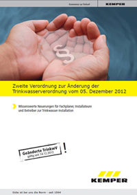 Die Neuregelungen zum Thema Trinkwasser bleiben dynamisch. Die am 14.12.2012 in Kraft getretene 2. Verordnung zur Änderung der Trinkwasserverordnung gab Anlass zur Überarbeitung der bisherigen stark nachgefragten Kommentierung aus dem Hause Kemper-Armaturen.