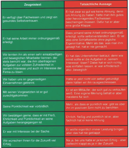 ein gutes Zeugnis nach Leistungen und Verhalten des Arbeitnehmers gar nicht gerechtfertigt ist. Da Chefs unter sich aber die tatsächlich schlechten Eigenschaften eines Mitarbeiters nicht unter den Tisch fallen lassen wollen, hat