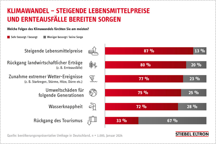 Gut drei Viertel der Menschen in Deutschland fürchten sich vor einer Zunahme extremer Wetter-Ereignisse wie beispielsweise Starkregen als Folge des Klimawandels. Um das Klima zu schonen, möchte knapp jeder Zweite grundsätzlich im Heizungskeller auf eine Wärmepumpe umstellen (49 Prozent). Allerdings sagen zwei Drittel, dass sie durch die emotional geführte Heizungsdebatte in Deutschland verunsichert sind. Das sind Ergebnisse aus dem Energie-Trendmonitor 2024. Insgesamt 1.000 Bundesbürgerinnen und Bundesbürger wurden von einem Marktforschungsinstitut bevölkerungsrepräsentativ im Auftrag von Stiebel Eltron befragt.
