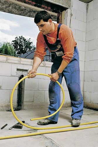 Wenn man als Hausinstallateur dann doch einmal eine Erdleitung realisieren muss, bringt die Lieferform dieses Rohrmaterials im Ringbund gleich den Vorteil mit sich, dass man in vielen Fällen auf Rohrverbindungen im Erdreich verzichten kann.
