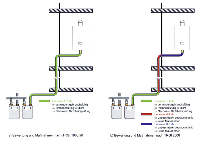 Die TRGI 2008 lässt zu, dass auch Gasleitungen, die eine Leckage von einem Liter pro Stunde oder mehr haben, ohne Eingriffe in Betrieb bleiben dürfen. Aber Vorsicht! Technische Regeln sind keine Kochbücher. Wer nach diesen arbeitet, darf sie nicht wörtlich umsetzen, sondern situationsbezogen anwenden.