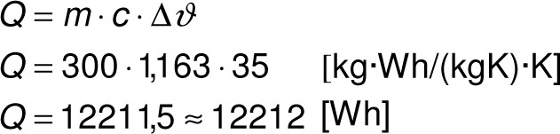 Die Energiemenge zur Warmwasserbereitung an einem Tag beträgt also 12212 Wh.