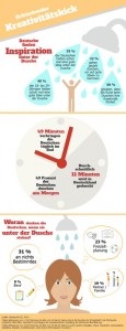 Fragt man die Deutschen danach, warum sie gerade unter der Dusche kreativ sind, so geben sie mehrheitlich die Ruhe und das Alleinsein an. Als weitere Gründe werden die Wärme des Wassers (39 Prozent), die Geräusche beim Duschen (32 Prozent) und die Wasserstrahlen auf der Haut (29 Prozent) genannt.