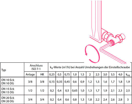 Cheffe holt zum Finale aus. Die unterschiedlichen Heizkörperleistungen und die verschiedenen Rohrleitungslängen zu eben diesen Heizkörpern hatten seinerzeit unterschiedliches Drosseln der Zu- und Abläufe dieser Heizkörper erfordert. Und diese Tatsache hatte dazu geführt, die Rücklaufverschraubungen unterschiedlich weit zu öffnen. Also, Rücklaufverschraubung komplett schließen - und die Anzahl der Umdrehungen in Richtung Öffnen wurden damals für jeden Heizkörper einzeln vorgegeben. Daraus resultiert ein definierter Druckverlust, wenn man will auch Drosselung, für jede Einstellung. Die Notizen zu den Rücklaufverschraubungen erklärte Cheffe weiter, dienten also zur Ermittlung des seinerzeit eingestellten Kv-Wertes. Jetzt wurde mir Cheffe wieder unheimlich, warum Kv-Wert? Der Kv-Wert beschreibt den Durchfluss eines Ventils unter einem angenommenen Druckverlust von einem bar. Die Hersteller von Rücklaufverschraubungen packen also diese Absperrungen in eine Prüfvorrichtung und ermitteln in Schritten von einer Vierteldrehung in Richtung Öffnen wie sich der Druckverlust verringert und tragen diese Werte in Diagramme ein. Eigentlich hatte ich also Kv-Werte von Ventilen notiert. Jetzt sehe ich meine Aufgabe schon fast wissenschaftlich, fast abenteuerlich. Jäger der (verlorenen) Kv-Werte...