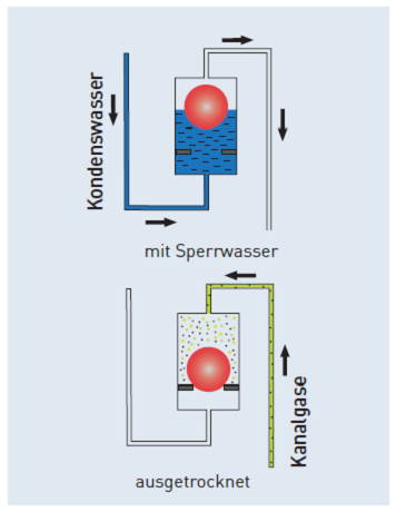 Klimageräte sind im Sommer sehr praktisch und komfortabel - im Herbst und Winter hingegen meist nicht in Betrieb. Während des Betriebs wird Kondensat erzeugt, das in das Abwassersystem abgeleitet werden muss. Bei längeren Ruhezeiten der Klimaanlage kann daher der angeschlossene Siphon zum Problem werden: Das Sperrwasser verdunstet und die Kanalgase werden nicht mehr zurückhalten. Nicht so beim neuen Kondensat-Siphon 138 mit Kanalgas-STOPP-Technik: Bei zeitweisem Wassermangel verschließt ein eingebautes Schwimmventil den Siphon, Geruchsbelästigungen werden zuverlässig verhindert.
