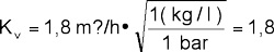 Der überschlägige berechnete Wert aus dem Versuchsaufbau stimmte also, der Kv-Wert beträgt tatsächlich 1,8 (m³/h). Nebenbei, es handelt sich bei der Formel um eine Zahlenwertgleichung. Dies ist eine Darstellungsform einer Gleichung, die statt Größen nur ihre Maßzahlen verknüpft. Mit welchen Maßeinheiten sie gültig ist, wird separat angegeben. In diesem Fall ist das Ergebnis eben „m³/h“. Wenn dieses Ventil unter anderen Bedingungen als denen aus dem Versuchsaufbau eingesetzt werden soll, kann die resultierende Größe jetzt berechnet werden.