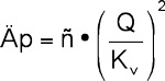 Was sollte man mit diesem Wert jetzt anfangen können? Der spezielle Fall, das ein Ventil direkt hinter einem Druckminderer eingebaut wird der auf 1 bar eingedrosselt wurde ist recht selten. Und dass der Kunde tatsächlich den Volumendurchsatz für diese geistreiche Konstruktion erfahren möchte ist wohl noch seltener. Wozu also dient dieser Wert? Wichtig ist, dass man diesen Druckabfall oder Volumenstrom hochrechnen kann auf beliebige andere Drücke oder Volumenströme. Die Eigenschaft des Ventils, definiert mittels Kv-Wert, lässt sich also rechnerisch übertragen. Wie sooft in der Anlagentechnik hat man hier eine überschaubare Formel: