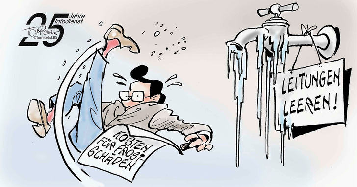 Beim längeren Leerstand eines Gebäudes empfiehlt sich während der Frostzeiten dringend eine Absperrung bzw. Leerung der wasserführenden Leitungen. Geschieht das nicht, so kann die Wohngebäudeversicherung nach Auskunft des Infodienstes Recht und Steuern der LBS die Leistungen kürzen.