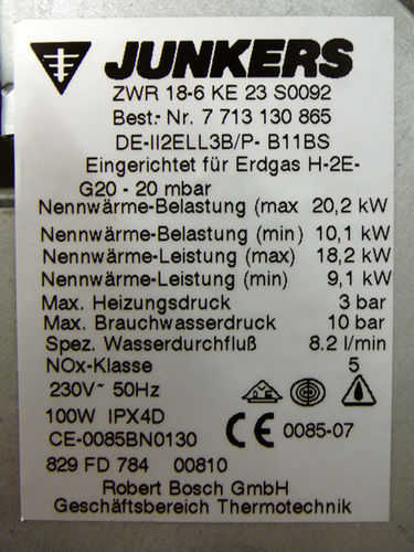 Zunächst muss man sich vergewissern, dass das Gerät auf die vor Ort anliegende Gasart eingerichtet ist. So darf beispielsweise ein Gerät mit der Kennzeichnung ‚cat. I 2ELL; 2E’ nur mit Erdgas E betrieben werden. Entscheidend ist hier die Kennung ‚2E’. Darauf ist die Feuerung werkseitig eingestellt. Auch ein Blick auf die Länderkennzeichnung kann einer Diskussion mit dem Schonsteinfeger vorbeugen. Das ‚DE’ auf dem Typenschild besagt, dass das Gerät die deutschen Anforderungen an die Ausstattung erfüllt. Ein weiterer kritischer Blick muss der NOx-Klasse gelten. Geräte, die in Deutschland betrieben werden, müssen der NOx-Klasse 5 entsprechen. Der Hinweis auf diese Klasse muss aber nicht zwingend auf dem Typenschild stehen. Sie darf auch in der Installationsanleitung angegeben sein. Bevor das Gerät über den Hauptschalter in Betrieb genommen wird, muss natürlich erst noch die Heizungsanlage befüllt werden. Das Füllwasser muss der VDI 2035 [1] entsprechen, was gegebenenfalls einen Enthärtung nötig macht. Der Fülldruck der Heizungsanlage sollte etwa 0,3 bar oberhalb des Vordrucks des Ausdehnungsgefäßes liegen. Das genügt, um eine ausreichend große Wasservorlage zu bilden. Hersteller geben auch manchmal in Tabellen den notwendigen Fülldruck an. Besser ist es natürlich, den Fülldruck zu berechnen. Dafür stehen im Internet unter www.sbz-monteur.de (Suchbegriff: „Ausdehnungsgefäß“) kostenlose Berechnungsprogramme zur Verfügung.