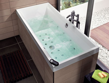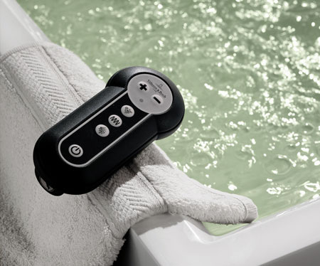 Durch die Verwendung von Duftessenzen entspannt sich der Körper; die Atemwege und Poren öffnen sich und das kann sich auch bei Erkältungen positiv auswirken. Damit der Wellnessfaktor auf der ganzen Linie stimmt, können LED-Unterwasserscheinwerfer mit automatischem Lichtwechsler für ein Rundum-Wohlfühl-Effekt sorgen. Durch den Farbwechsel schüttet der Körper Endorphine aus und je nach Wunsch kann ein entspannender oder anregender Effekt erzielt werden. Die Steuerung der Wannenaktivitäten erfolgt entweder über ein Display, das im Wannenrand eingebaut ist, oder mittels Fernbedienung. Die Fernbedienung ist dabei sogar wasserdicht und schwimmfähig ausgeführt – denn dass sie mal „baden“ geht, lässt sich ja tatsächlich nicht ausschließen.