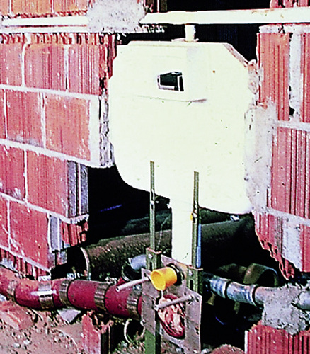 Solche Stemmarbeiten als brutale Eingriffe ins Mauerwerk verursachen - hinsichtlich des notwendigen und aufwändigen Nacharbeitens - hohe Kosten. Sie können zudem erhebliche Folgeschäden bedeuten, z. B. wenn später Risse in der Wand entstehen, weil die Statik durch das aufstemmen verändert wurde. Und oft ist auch keine sichere Befestigung der Sanitärobjekte gegeben, da die geschundene Wand keine Substanz mehr hat. Ferner muss sich der normal denkende Mensch die Frage stellen, warum der Maurer eine Wand zieht, die dann vom Anlagenmechaniker quasi wieder abgebrochen wird. Aus diesen guten Gründen erfolgt die Installation der Sanitärtechnik heute nicht mehr in, sondern vor der Wand. Bei der Vorwandinstallation werden Leitungen und Trageelemente für Sanitärapparate vor der Rohbauwand oder innerhalb der Konstruktion einer Ständerwerk-Wand montiert und nach Fertigstellung der Installationsarbeiten verkleidet.