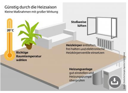 - Der Raum sollte nur so warm sein wie nötig. Jedes Grad Raumtemperatur weniger kann den Geldbeutel um 6 % der Jahresheizkosten entlasten.