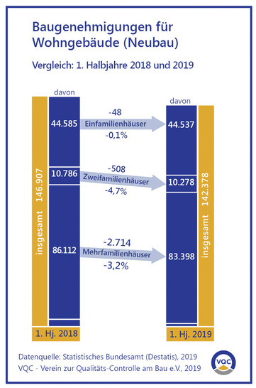 Etwa 100.000 Einfamilienhäuser werden Jahr für Jahr in Deutschland gebaut. Um den nach wie vor wachsenden Bedarf an Wohnraum befriedigen zu können, bedarf es in ganz Deutschland enormer Anstrengungen, auch beim Bau des klassischen Eigenheimes. Aktuelle Zahlen des Statistischen Bundesamtes zeigen jetzt, dass im ersten Halbjahr 2019 die Zahl der Baugenehmigungen insgesamt wieder rückläufig war. Lediglich die Baugenehmigungen für Einfamilienhäuser bewegen sich dabei auf Vorjahresniveau.