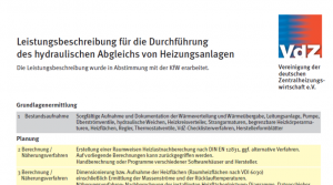Als geeignete Nachweis dienen Unterlagen, aus denen die Durchführung des hydraulischen Abgleichs auf Grundlage der VOB/C – DIN 18380 plausibel hervorgeht, dies können z.B. sein: