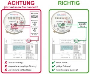 Wenn die gesetzlich vorgeschriebene Eichfrist eines Zählers abgelaufen oder vorzeitig erloschen ist, zum Beispiel wegen beschädigter Eichkennzeichnung, darf das Messgerät nicht mehr für den gesetzlichen Abrechnungsverkehr verwendet werden, darunter fällt auch die Betriebs-, Neben- und Heizkostenabrechnung.