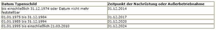 Werden diese Grenzwerte überschritten, sind die Einzelraumfeuerungsanlagen abhängig vom Zeitpunkt ihrer Errichtung außer Betrieb zu setzen oder mit einer Einrichtung zur Reduzierung der Staubemissionen nach dem Stand der Technik nachzurüsten.