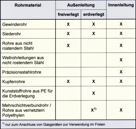Rohre, die als Gasleitung Verwendung finden sollen, müssen gewisse Eigenschaften besitzen. Es kann folglich nicht alles, was man als Rohr bezeichnen kann, zum Einsatz kommen. Um herauszufinden, welches Rohr nun geeignet ist, hilft ein Blick in die Technischen Regeln für Gas-Installationen, dem DVGW-Arbeitsblatt G 600 [1]. Hier werden die Produktnormen der Rohre genannt, die sich für Gas-Installationen eignen.