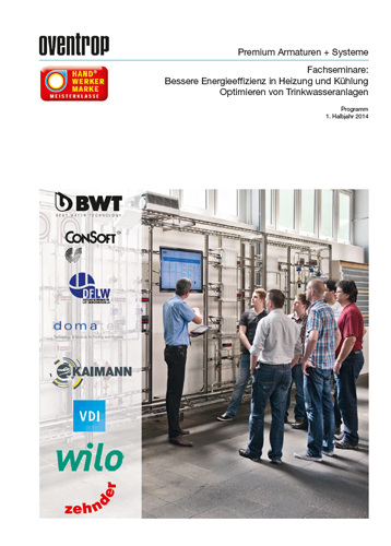 Ausführliche Informationen zu den Veranstaltungen sind in der Oventrop Broschüre Fachseminare 1. Halbjahr 2014: „Bessere Energieeffizienz in Heizung und Kühlung / Optimieren von Trinkwasseranlagen“ oder im Internet unter www.oventrop.de zu finden.