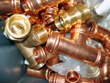 Was für das Rohr gilt, muss natürlich auch auf Fittings und weitere Bauteile einer Wasserleitung angewandt werden. Auch diese müssen fabriksauber zum Bestandteil einer Installation mutieren. Es gibt Hersteller, die liefern die Fittings verschlossen aus. Die Anschlussenden sind mit Kappen geschützt. Auch wenn - wie beispielsweise bei Mepla-Fittings von Geberit - dies in erster Linie dem Schutz der Dichtelemente dient, wird einer Verunreinigung des Bauteiles vorgebeugt. Eine Maßnahme, die bei Fittings mit eingelegten Dichtelementen (wie Pressfittings) in jedem Fall nötig wäre. Denn für die maschinelle Ausstattung der Fittings mit Dichtelementen während der Produktion wird ein spezielles (natürlich trinkwassertaugliches) Siliconspray, Fett oder ein Fettbestandteil (Glycerin) eingesetzt. Daher sind die Fittings auch bei Auslieferung leicht fettig und in Folge auch klebrig. Wandern diese unverpackt zur Baustelle, fungieren sie gewissermaßen als Schmutzmagnet. Was außen auf dem Bauteil unbedenklich ist, sollte sich aber tunlichst nicht in seinem Inneren festsetzen. Verpackungseinheiten in Form von Beuteln mit einer Anzahl von Fittings darin lösen das Problem nicht. Denn um nur einen Fitting daraus verarbeiten zu können, muss die Verpackung geöffnet werden, womit der Schmutz-Schutz entfällt. Dass es auch anders geht, zeigen führende Fittinghersteller längst. Sie liefern die Fittings nicht nur in einem Karton mit fünf bzw. zehn Teilen, sondern jeden Fitting einzeln in Folie verpackt. Dieser wird folglich erst unmittelbar vor seiner Verwendung als Bauteil einer Wasserleitung aus seiner Schutzhülle geholt. Auf diese Weise ist sichergestellt, dass quasi „ab Werk“ keine Verunreinigungen das Fitting erreichen können, die später unter Umständen eine Menge Ärger verursachen.