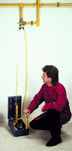 Geprüft wird mit Luft oder mit Inertgas, wie zum Beispiel Stickstoff. Man geht also mit Gasen zu Werke. Und Gase haben zwei Eigenschaften, die Einfluss auf die Leitungsprüfungen mit sich bringen. Sie reagieren schnell auf Temperaturveränderungen und sie sind kompressibel. Die sich daraus ergebenden Situationen muss der Anlagenmechaniker bei der Kontrolle von Niederdruck-Gasleitungen (Betriebsdruck bis 100mbar) berücksichtigen. Für die Kontrolle stehen die Belastungsprüfung, die Dichtheitsprüfung und die Gebrauchsfähigkeitsprüfung zur Verfügung. Ferner gibt es noch die Druckmessung und die so genannte Schlussprüfung, also das Absuchen von Verbindungsstellen mit schaumbildenden Mitteln oder mittels Gas-Spürgerät. Auf die Druckmessung und die Schlussprüfung soll im Folgenden aber nicht näher eingegangen werden.