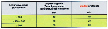 Schließlich beträgt der Prüfdruck 1 bar und entspricht damit dem rund 44-fachen des späteren Betriebsdruckes. Aufgebracht wird dieser mit Luft oder durch Einsatz eines Inertgases. Das Messgerät muss so genau anzeigen, dass Druckveränderungen von 100 mbar erkennbar sind. Die Forderung nach einer verhältnismäßig groben Druckanzeige und die Tatsache, dass nach der Druckbeaufschlagung keine Wartezeit für eine Temperaturanpassung des Prüfgases an die Leitung abgewartet werden muss, machen klar, dass es hier nicht in erster Linie um Druckveränderungen geht. Deshalb muss während der mindestens zehnminütigen Belastungsprüfung die Leitung auch optisch unter die Lupe genommen werden. Klar, dass die Leitung für diese Kontrolle noch zugänglich sein muss. Die Belastungsprüfung wird deshalb unmittelbar nach der Rohinstallation durchgeführt, wenn an den Verbindungsstellen noch kein Korrosionsschutz aufgebracht und die Leitung noch nicht verputzt bzw. verdeckt wurde.