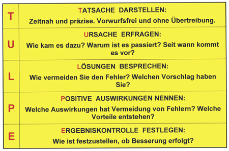 Auf diese Weise führt sogar eine Kritik am Ende zu einem echten Erfolgserlebnis für den Monteur. Und der Betrieb hat dank des ausgemerzten Fehlers einen reibungsloseren Arbeitsablauf zu verzeichnen. Wer es also schafft, eine Kritik emotionslos zu versachlichen, der vermeidet einen „dicken Hals“ bei seinem Mitarbeiter und gewinnt für den Betrieb am meisten.