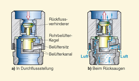 Da findet man Garten-Wasserentnahmestellen ausgestattet mit einer Entnahmearmatur ohne jegliche Absicherung vor. Die Nachbefüllung für die Heizungsanlage im Keller ist nur mit Rückflussverhinderer und Schlauchbelüfter als unzureichend abgesichert zu entdecken. Im Bad wurden die Markenarmaturen an Wanne und Dusche gegen Discounter-Sonderangebote unter Einsatz des freien Samstags ausgetauscht. Leider könnte man diese Aufzählung noch erheblich weiterführen. Solange nichts passiert und keiner der Hausbewohner nach dem Genuss von vermeintlichem Trinkwasser „Schaum vor dem Mund“ hat, erregt das alles kein Aufsehen. Dabei ist die Frage, wann dieser Fall eintritt, nur eine zeitliche. Grund genug für den Anlagenmechaniker bei der Erstellung und bei Arbeiten an Trinkwasserleitungen ein Auge darauf zu haben, ob die Entnahmestellen ausreichend abgesichert sind.