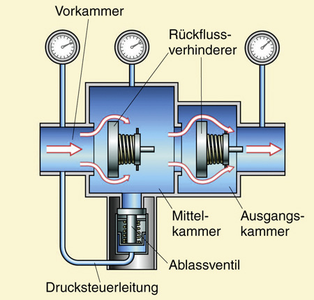 Bereits seit August 1930 (also „erst“ seit schlappen 82 Jahren) wird der Einbau eines Rückflussverhinderers an der Wasserzähleranlage gefordert. Schlimm genug, dass auch heute noch Installationen ohne diese Armatur zu finden sind. Ungeachtet wie die nachfolgende Trinkwasseranlage abgesichert ist, dient dieser als Rückdrück- oder Saugschutz des Versorgungsnetzes.