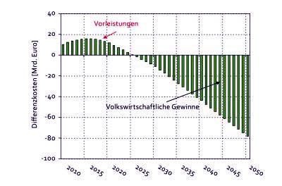 Der Kostenschnittpunkt des Mixes erneuerbarer Energien wird um das Jahr 2025 erreicht. Den Vorleistungen stehen langfristig erheblich höhere volkswirtschaftliche Gewinne gegenüber.