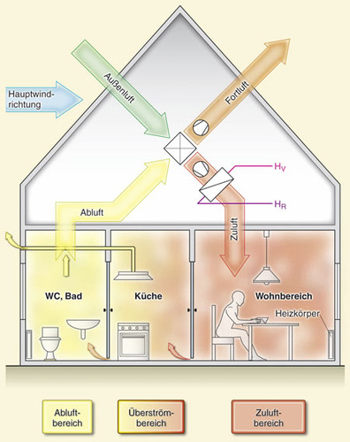 Allen gemein ist, dass sie die energiereiche Luft des Raumes nicht ungenutzt nach draußen entfleuchen lassen, sondern dieser Luft erst mal eine gehörige Portion Wärmeenergie entziehen. Die dabei entzogene Energie wird der Frischluft auf dem Weg in den Raum mitgegeben. Der Heizkörper in diesem Raum braucht folglich nicht so doll ran und das spart letztlich Heizenergie.
