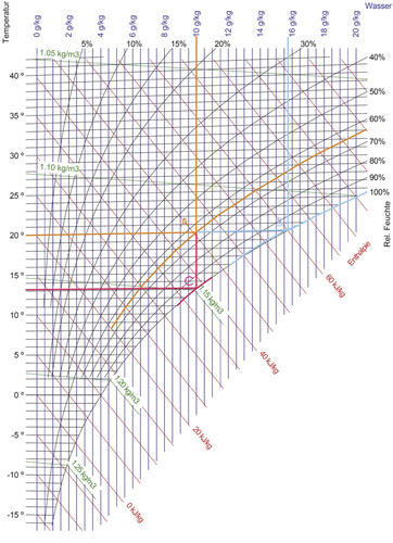 Temperatur 20 °C bei einer absoluten Feuchte von 10 Gramm pro Kilogramm Luft (g/kg)