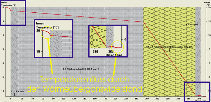 Für die U-Wert-Bestimmung werden lediglich der Übergangswiderstand der Raumwärme (Rsi) auf die Wand und dann der Widerstand von der Wand an die Umgebung (Rse) als jeweilige einheitliche Größe erfasst.