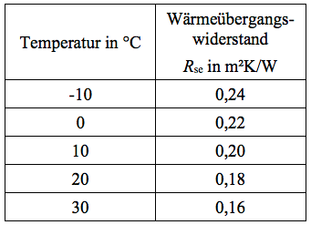 Auch trifft die Konvektion nach unten auf andere Verhältnisse als bei gleicher Temperatur nach oben. Betrachtet man nur den konvektiven Anteil des Wärmeübergangswiderstandes, gilt für Innenoberflächen beispielsweise ein Widerstand von