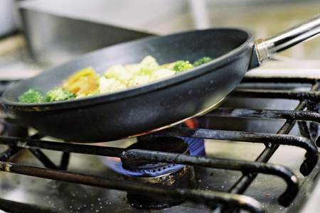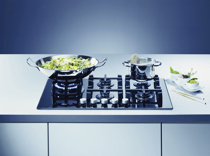 Auch in modernen Küchen ist der Gasherd zu finden; dort sogar in erweiterten Ausführungen mit mehr als vier Kochstellen oder in der Kombination mit einem Wok-Brenner. Die 11-kW-Grenze wird da in Sachen Nennbelastung schnell überschritten. Liegt sie aber nicht höher als 18 kW, ist der Betrieb der Geräte unbedenklich, wenn die Küche eine Größe von mindestens 2 m³/kW zu bieten hat und über Fenster oder Tür ins Freie (wie im Fall des normalen Gas-Herdes) verfügt. Zusätzlich muss eine Dunstabzugshaube her, die mindestens 15 m³/h je kW Gesamtnennbelastung ins Freie pustet. Dass dabei auch entsprechende Zuluftöffnungen vorhanden sein müssen, um entsprechende Luftmengen nachzuliefern, versteht sich von selbst. Eine Sicherheitsverriegelung (Herd wird nur mit Gas versorgt, wenn Ablufthaube fördert) wird nicht verlangt. Die Hersteller der Gasgeräte müssen aber in den Bedienungsanleitungen darauf hinweisen, dass die Haube in Betrieb sein muss, wenn die Geräte benutzt werden. Da Bedienungsanleitungen von den Anwendern erfahrungsgemäß immer ‚gerne’ gelesen werden, schadet es nicht, die Kunden auf diesen Umstand hinzuweisen. Handelt es sich um einen Haushalts-Gasherd ohne Flammenüberwachung, ist es mit dem bloßen Hinweis nicht getan. Hier darf der Herd nur dann betreiben werden können, wenn die Abluft-Dunstabzugshaube einen Volumenstrom von 100 m³/h fördert. Schließlich geht es hier darum, die Bildung explosibler Gas-Luft-Gemische zu verhindern, wenn die Flammen unbemerkt erlöschen und dann Gas austritt.