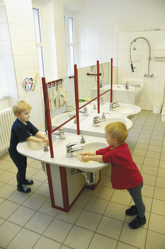 Für den richtigen Mix von kalten und warmen Wasser stehen Zweigriff-Mischbatterien, Einhebelmischer und Thermostatbatterien zur Verfügung. Die Auswahl, welche Armatur in welchem Anwendungsfall eingesetzt wird, sollte überlegt erfolgen. Mit der DIN 1988-2 [3] wird bereits seit Dezember 1988 die Empfehlung ausgesprochen, im häuslichen Bereich nur Armaturen zu verwenden, die eine Entnahme von Wasser mit mehr als 40 °C erst nach entriegelt einer Sicherheitssperre oder überwinden eines Sicherheitsanschlages möglich machen. Auf diese Weise soll erreicht werden, dass Wasser mit mehr als 40 °C Temperatur erst dann - und damit auch bewusst und gewollt - entnommen werden kann. Auch die wesentlich jüngere DIN EN 806-2 greift diese Problematik auf. Mit ihr wird gefordert: „Anlagen für erwärmtes Trinkwasser sind so zu gestalten, dass das Risiko von Verbrühungen gering ist.“ Weiter empfiehlt die DIN-EN-Norm den Einsatz von Mischbatterien mit Auslauftemperaturbegrenzung an Entnahmestellen in sensiblen Bereichen. Dazu zählen zum Beispiel solche in Krankenhäusern, Seniorenheimen oder in Schulen. Hier soll die Wassertemperatur auf 43 °C begrenzt sein. Für Duschanlagen in Kindergärten und Pflegeheimen wird eine maximale Auslauftemperatur von 38 °C empfohlen.