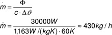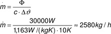 Beispiel: Um ein Sechsfamilienhaus mit einer Heizlast von 30 Kilowatt zu versorgen sollen zwei Ansätze kontrolliert werden. Zum einen bei einer Spreizung von 60 Kelvin (110 °C / 50 °C) und zum anderen bei einer Spreizung von 10 Kelvin (55 °C /45 °C). Welcher Volumenstrom wird jeweils notwendig sein?