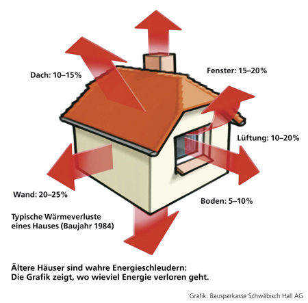 abgegeben. Das Flachdach auf diesem Schuhkarton gibt bei gleicher Fläche und einem U-Wert von 2,0 W/(m²K) auch noch Wärme ab, nämlich