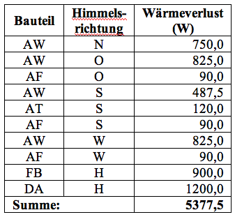 Nachdem das soweit klar ist, fasse ich die Wärmeverluste zusammen:
